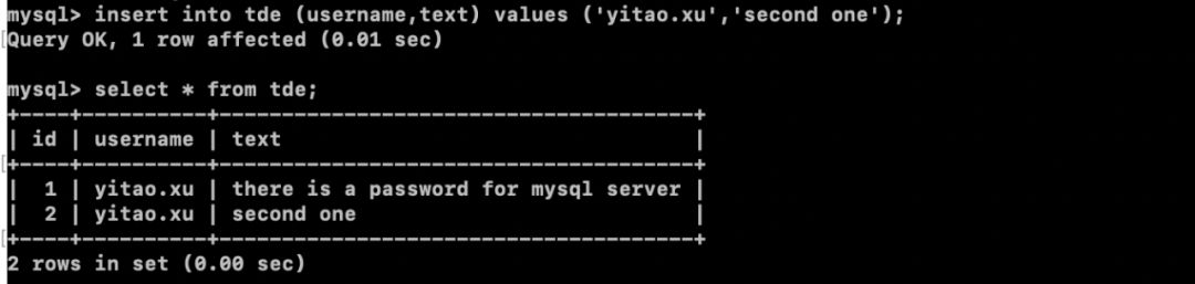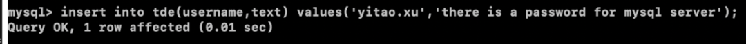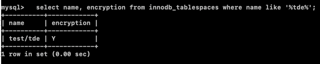 下面,我们开启加密,执行:alter table test.tde encryption ='y';