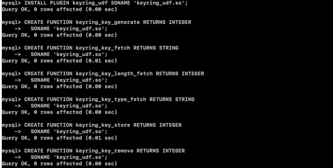 执行:INSTALL PLUGIN keyring_udf SONAME 'keyring_udf.so';