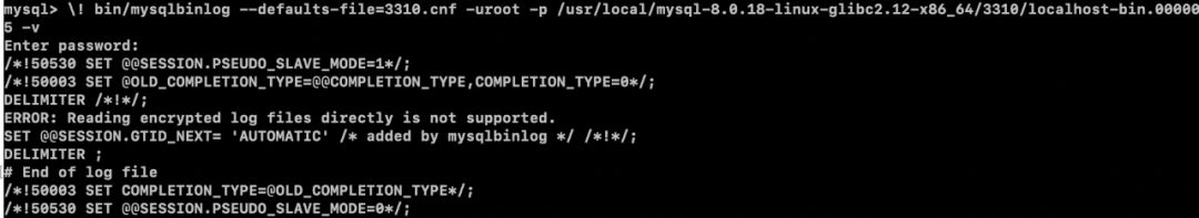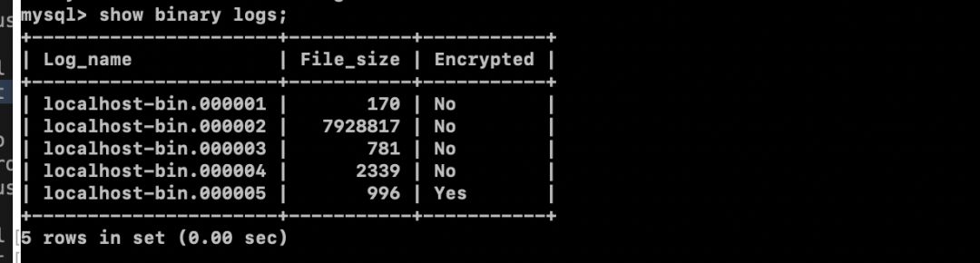 接下来,我们开启binlgo加密,在开启之前,先确认一下日志的加密情况。
