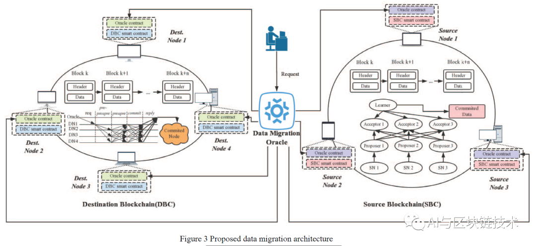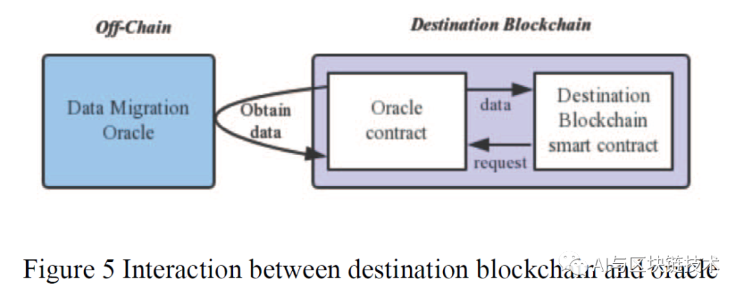 在该体系结构中,oracle集成了输入oracle和输出oracle的特性。它用于将数据从一个区块链迁移到另一个区块链。oracle在该架构中的职责包括接收用户的数据迁移请求,使智能合约能够将数据发送到区块链之外,并向另一个区块链提供数据。