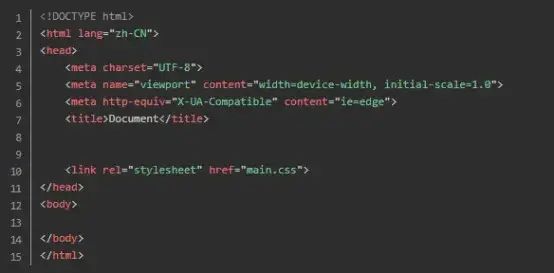 不用看太多,只要输入5个字母 html5,为了项目显示好看加个CSS文件,写入截图内容: