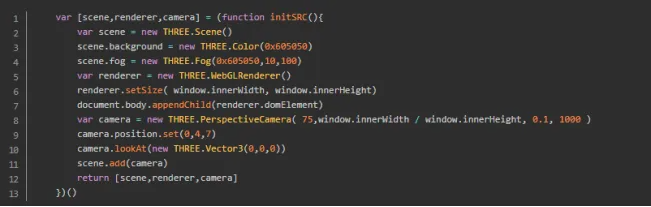 每个Three.js项目都必须基于三大件:场景、相机、渲染器组成,你可以把他们封装成一个函数。这是个取巧的方法,执行这个函数,能一次性得到三大件。