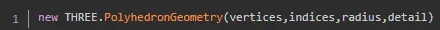 IcoshahedronGeometry 正二十面体、TetrahedronGeometry 正四面体、OctahedronGeometry 正八面体、DodecahedronGeometry 正十二面体