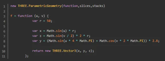var torus = new THREE.Mesh(new THREE.TorusGeometry(1,0.5,20,20), new THREE.MeshStandarMaterial({color: "skyblue"}))scene.add(torus)
