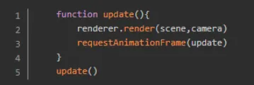 这时已经看见这些三维物体了,只要动态改变物体性质(位置、颜色、等等)它还可以渲染成动画,动画需要一个window新版函数,requestAnimationFrame,它有个回调函数,一般是回调自身。