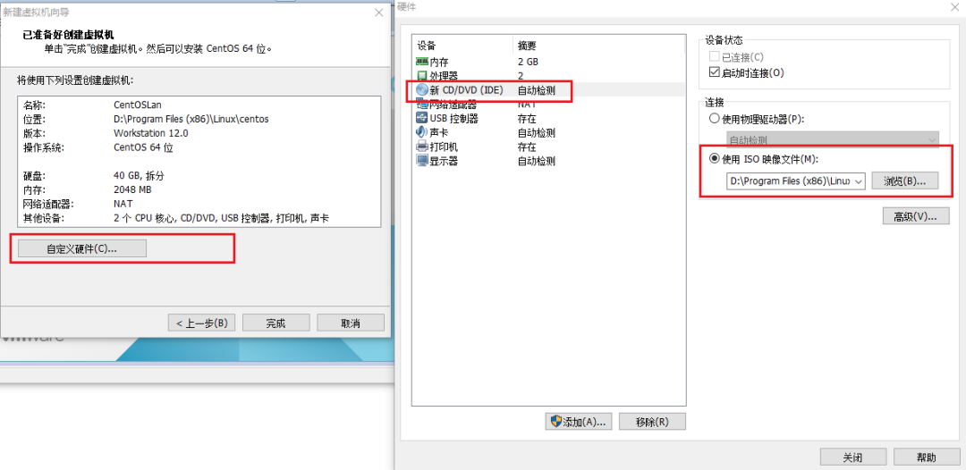 选择centos得ISO镜像文件,先选择CDDVN---ISO镜像文件---浏览找到镜像、