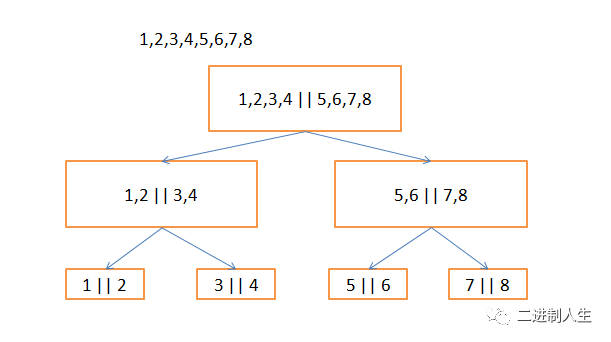 分治:分而治之,把一个复杂的问题分解成很多规模较小的子问题,然后解决这些子问题,把解决的子问题合并起来,大问题就解决了。