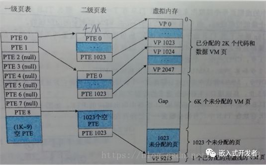 (1)一级页表中的一个PTE是空的,其对应的二级页表就不存在了,节约了很大部分内存。 (2)只有一级页表需要总是存储在内存中,其二级页表使用时才会加载进内存,除非频繁使用的二级页表。
