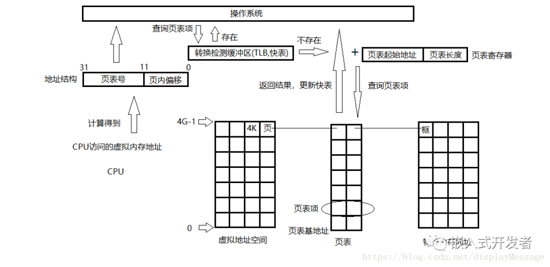 人类是聪明的,针对多级页表这个缺点,又发明了缓存机制。即将最近访问过的或者频繁访问的页的页表项放于缓存之中,下次先去那里看,如果有直接去缓存拿。也就是下面的图: