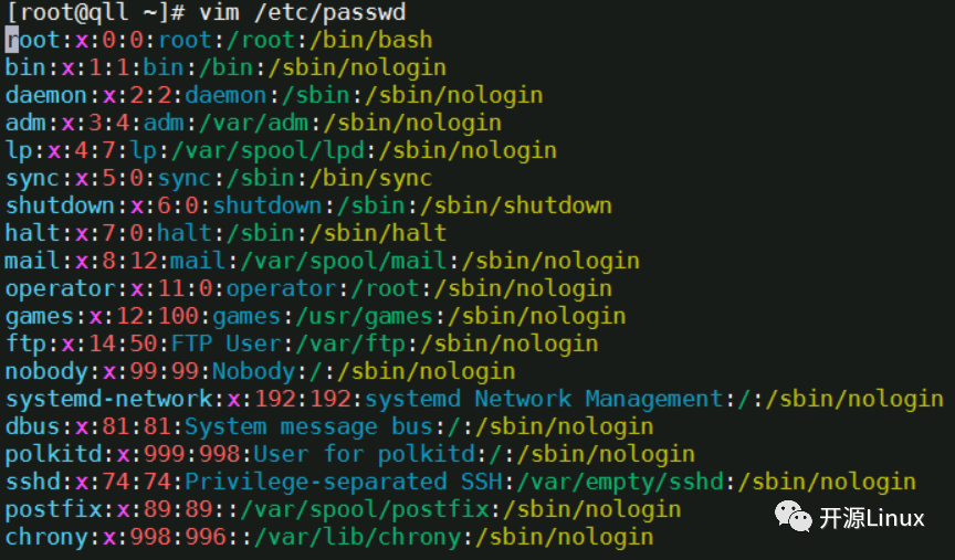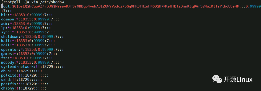 文件中。由于所有用户对 passwd 文件均有读权限,因此密码信息并未保存在该文件中,而是保存在了 /etc/shadow
