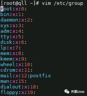 第一个字段:用户组的名称。 第二个字段:为组密码,这里的 x