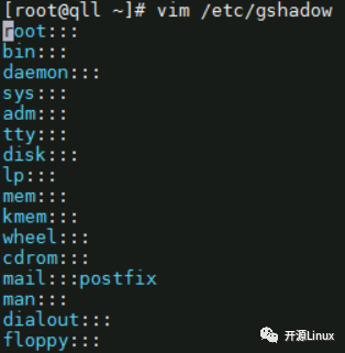 配置文件中,任何用户均可读取。用户组的真实密码保存在 /etc/gshadow