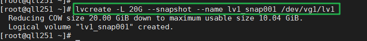 其实快照就是一个特殊类型的逻辑卷,跟创建逻辑卷的命令相同,也是lvcreate。