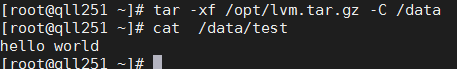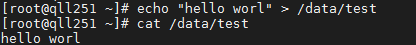 test文件内容已变成“hello world”,说明整个数据卷上的内容已经被还原到了创建快照的时刻。