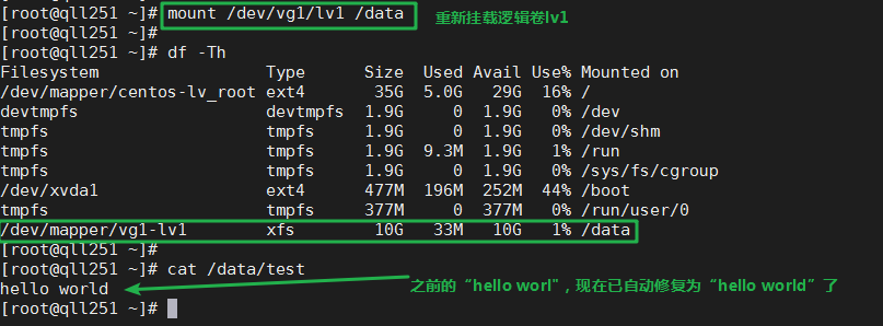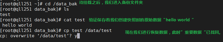 。现在我们采用「LVM快照回滚」找回我们的“重要数据”