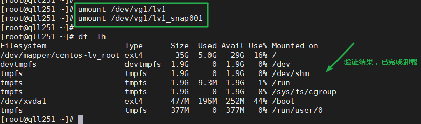 3、卸载数据卷&&格式化数据卷&&重新挂载