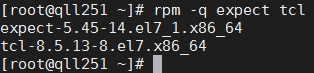 可以看到系统已经安装有这两个软件,如果没有,yum -y install expect tcl