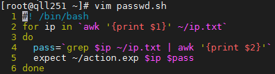 文本中的服务器IP及root密码分别提取出来;通过for循环,批量交给expect解释器执行。
