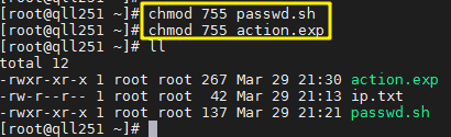 接受从bash传递过来的参数,从0开始,分别表示第一个,第二个参数。这里表示从passwd.sh脚本中提取出来的ip及密码第4行设定了本脚本所有的超时时间,单位是秒(s) 第5行利用 spawn