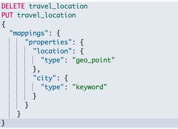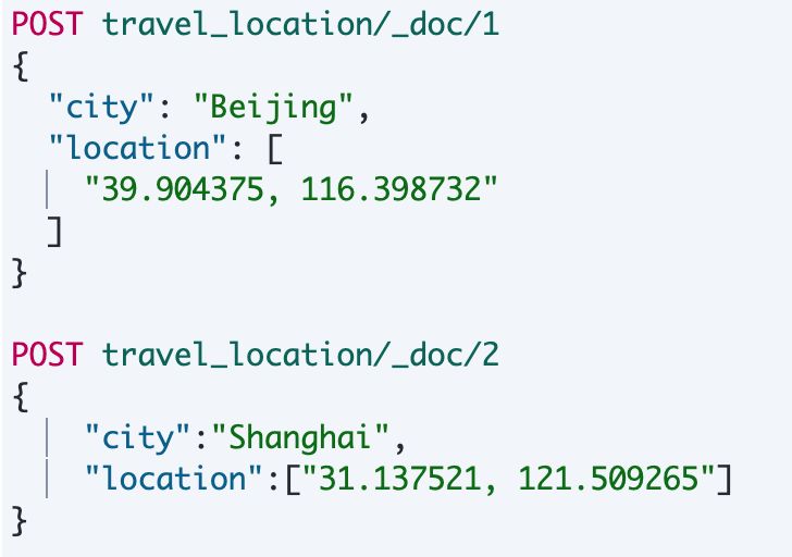 location 为 geo_point 类型,用来存放所在地区的地理坐标点,city 字段用于名称显示。