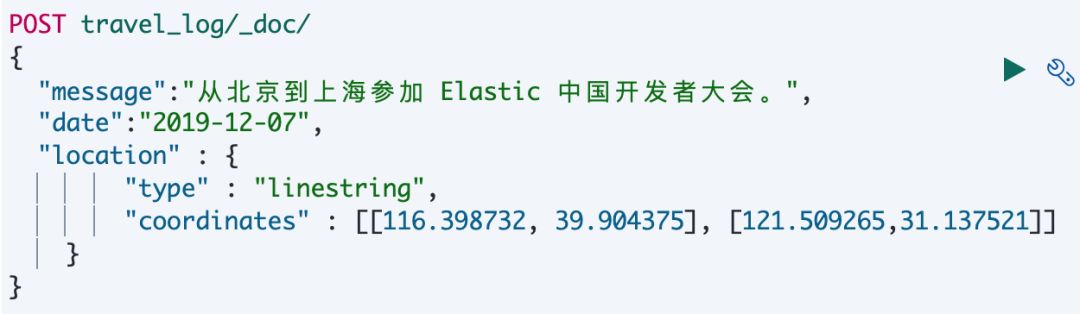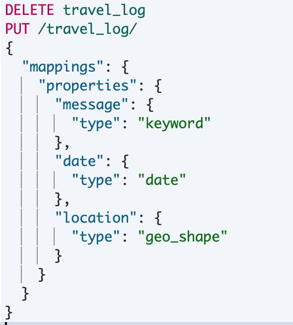 再新增一个出差记录索引,用来保存出差记录,这里使用了一个 geo_shape 类型,用于保存旅行轨迹,如下: