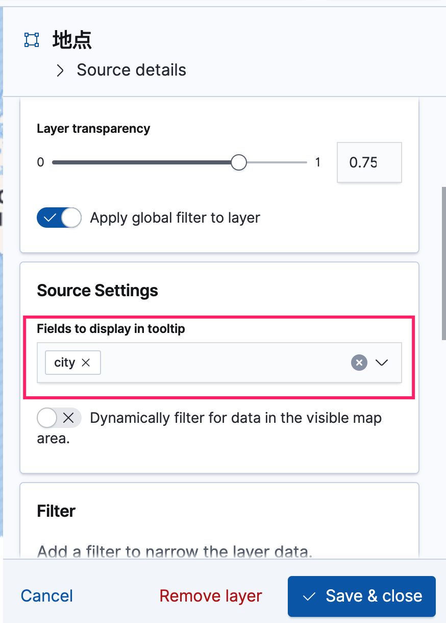 点击 Add Layer,进入下一步,需要给这一层起一个名字,比如就叫“地点”吧。选择一个字段用于展示,这里就选择 city 吧。