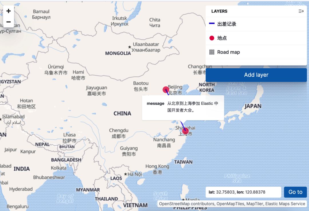 上面的例子算是小试牛刀,其实 Elastic 的 Maps 还能自定义展示更多东西,如矢量地图、地理多边形等,再通过分层将不同维度的数据在一张地图上展示。