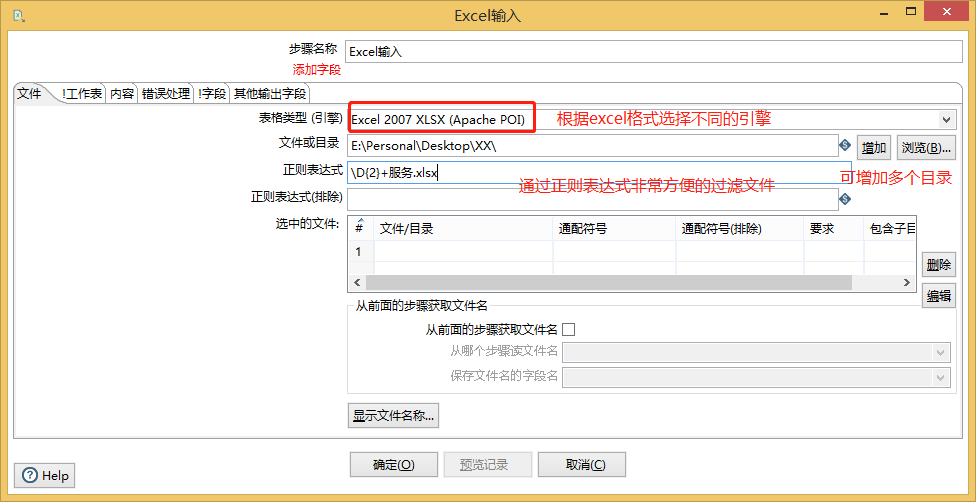 kettle不仅支持以上这些文件作为输入,还支持其它方式的输入,比如ldap、http请求等,但对于任何方式的数据作为输入,必须以数据格式处理为技术点,通过深入学习这些格式的处理方法,就能够在多种格式中随意搭配,完成复杂的业务逻辑。