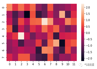 在上面的示例中,我们使用Numpy随机函数绘制了一个带有随机数的简单热力图,使用sns .heatmap()函数绘制了热图。在第一步中,我们导入了seaborn库,并将其命名为sns,将Numpy库命名为np。在下一步中,我们使用随机生成的8×12矩阵创建了数据集。在最后一步中,我们通过向heatmap函数传递所需的参数绘制了heatmap。