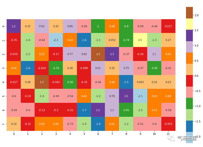 这里我们随机创建一组数据,在实际做科研或者业务的时候这一组数据可以是相关系数、RMSE、趋势、最大值和最小值等各种数据。