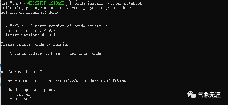 conda安装完了,进入到到自己新建的环境变量下,然后开始Jupyter Notebook安装