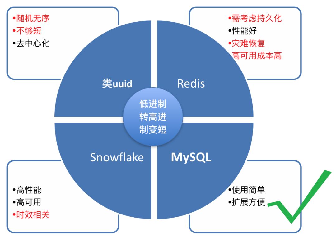 这种方式使用简单,扩展方便,所以我们使用 Mysql 的自增主键来作为短链的 id。简单总结如下: