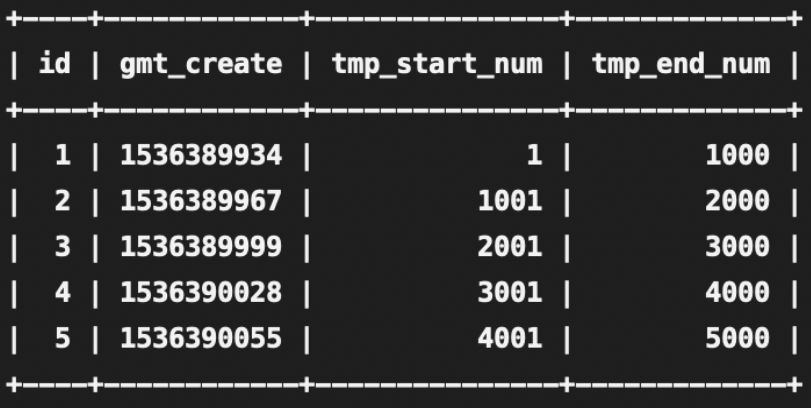 如图示:tmp_start_num 代表短链的起始 id,tmp_end_num 代表短链的终止 id。