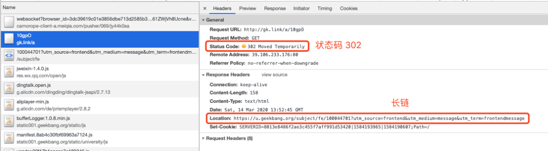 从上文可知,短链好处多多,那么它是如何工作的呢。我们在浏览器抓下包看看