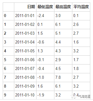1df = pd.read_excel('/home/kesci/input/weather8094/徐家汇气温.xlsx')