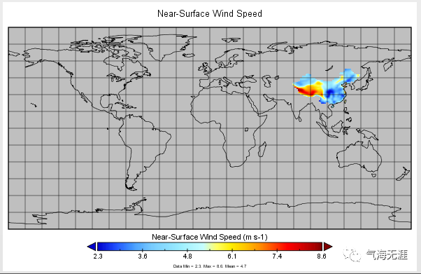 代码非常简单,第一行是读取原始CMIP6的数据,第二行代码就完成了转换工作,是不是非常简单?第三行,仅保留需要的风速数据,第四行,我们就把掩码后的数据另存为nc文件了。