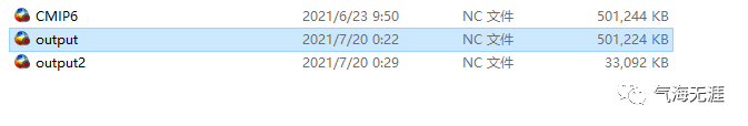 从图中可以看出CMIP6.nc和output.nc文件大小是一样大,但是经过selbox操作之后,output2.nc文件就很小了。