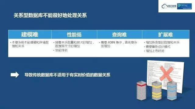 这一页是说关系型数据库处理复杂关系的时候,建模难、性能低、查询难、扩展难。导致传统的数据库不能处理实时的数据关系。