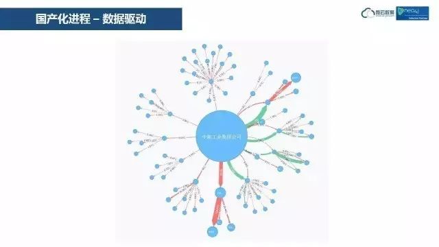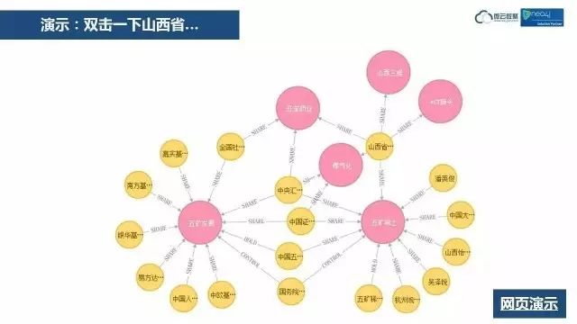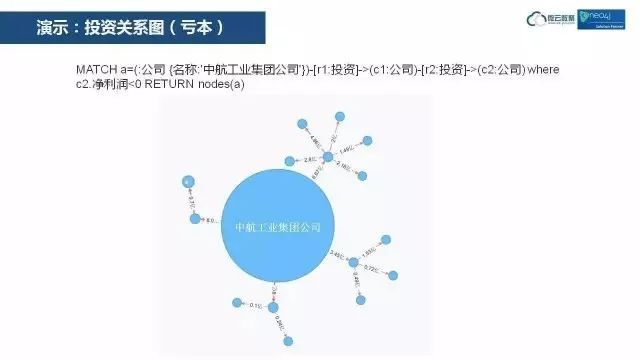 这个图里,微云数聚又做了贡献,在原版中,这个图中的节点大小是一致的,而微云数聚可以让这个圆圈的大小由数据驱动,投资资本大,圆圈就大。数据驱动这个功能,是微云数聚为Neo4j在本地化过程中所做的扩展。