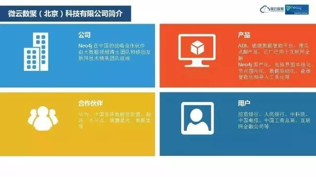 微云数聚(北京)科技有限公司是一家实力雄厚的大数据技术公司,由移动互联网技术专家团队、大数据专业团队和建模博士团队组成。微云数聚专注于研究图数据库技术及其应用,是世界领先的图数据库Neo4j在中国的战略合作伙伴和官方代理,他们研制的Neo4j简体中文扩展版,是专为中国企业量身打造、符合中国企业习惯的图数据库系统,除了提供简体中文界面,还支持节点显示成图片,显示效果由数据驱动;增加了智能查询,并且开发了简便导入Excel、MySQL和Oracle的工具--导入精灵,这些扩展将极大促进Neo4j在华语地区的推广使用。微云数聚在华为的帮助下,在推介Neo4j的过程中,与中国互联网、大数据企业客户建立了良好的合作和信用关系,为Neo4j的市场开拓奠定了良好基础。