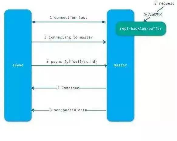 从节点同步主节点数据完成后,主节点将缓冲区的数据继续发送给从节点,用于部分复制。