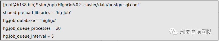 highgo=# select * from hgjob.job;highgo=# select hgjob.job_start(4, now()+interval '1 minute');highgo=# select * from hgjob.job;