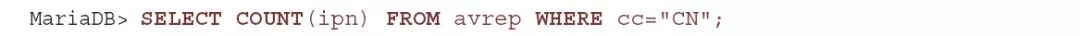为了得到来自中国(CN)的所有IP地址计数,您可能会发出以下查询: