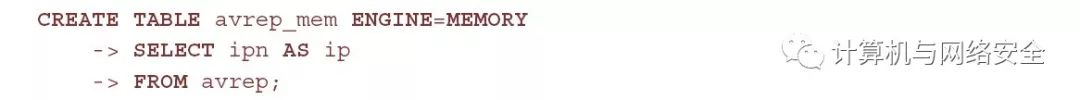 缺少可用RAM或使用无法利用大量RAM的传统RDBMS是任何需要扩展的项目的厄运的预兆。数据库使用RAM(在其他事物之间)来缓存硬盘中的一部分表并缓存查询结果。更先进的SQL数据库还能使用RAM作为内存表。如果您知道必须常使用参照数据(如资产元数据,非经常变化的IP列表),在您进行连接(JOIN)、联合(UNION)和子查询(SELECT)时,将这些信息装载到内存SQL表能够得到大量好处。这通常和定义一个查询一样简单,它可以是一个现存表的行或字段的所有集合,需要填充一个内存配置。比如说,如果希望将AlienVault表中的所有IP地址存储到一个内存表中(来保证它呆在那里而不是依靠高速缓存保存),您可以执行以下代码: