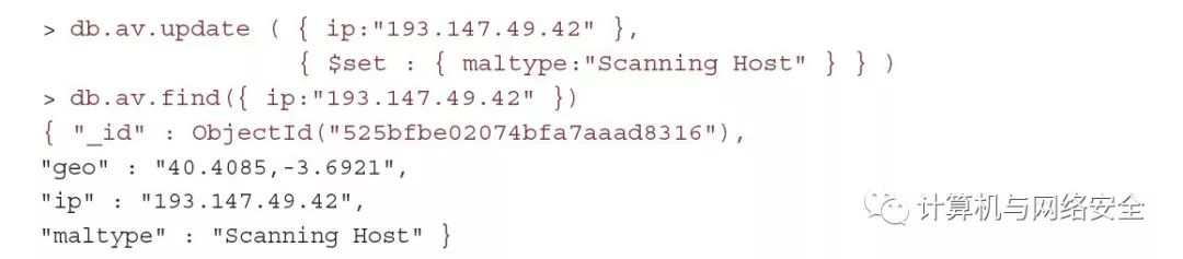 要将这个例子扩展到存储整个AlienVault数据库非常简单,通过IP地址索引,并使用存储在值部件中的其他相关字段。