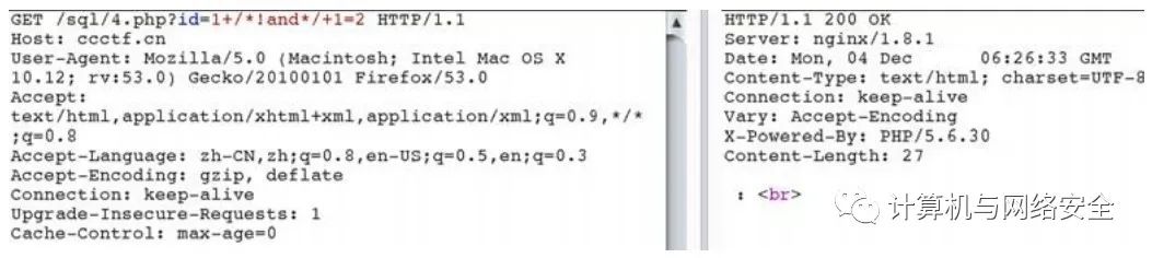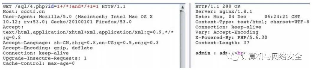 内联注释绕过注入的测试地址:http://ccctf.cn/sql/4.php?id=1。
