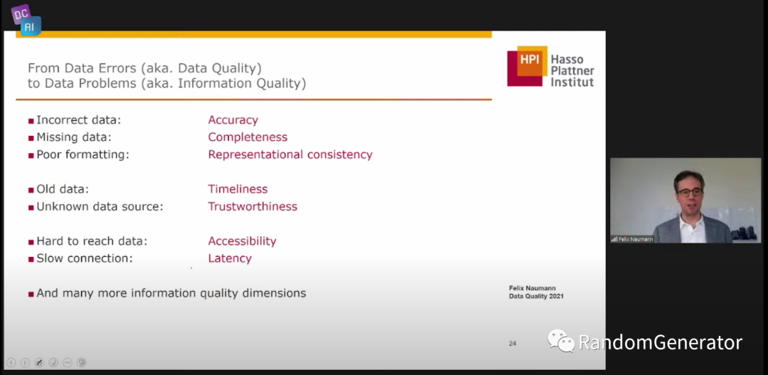在 QA 环节有个问题挺好的,数据清洗这类问题可以说是很难从根本上完全解决的,总是会有新的数据问题出来,提问者想知道是否有这方面研究的“圣杯”?Felix 回答说他认为可能的“圣杯”是我们能够在某个模型精度的要求下,获取到应该去修复/提升整个 pipeline 中哪个部分的数据质量,并修复到什么程度的信息,这样我们就可以做整体投入的 trade-off。我感觉说的挺在理的,在 Model Centric 时代我们研究了很多 bias variance trade-off,对各种模型参数带来的优化和问题都做了研究,很多“老中医”对什么情况下调什么模型参数都很有经验,这方面的能力在 Data Centric 方向上还十分欠缺。