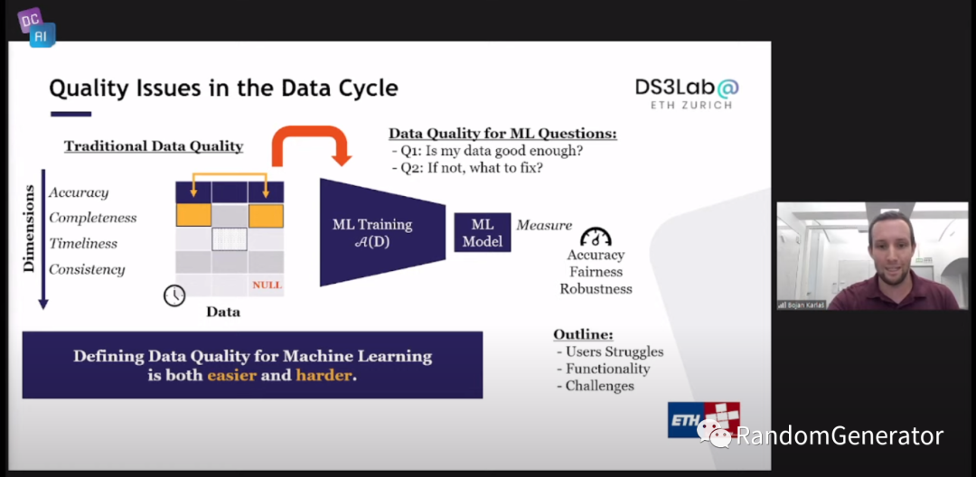 接下来针对演讲主题,作者给出了一个总览,感觉隐约也承接了上个 talk 中提到的“圣杯”,即我们希望回答两个问题:我们的数据是不是足够好(让模型有足够的精度效果),以及如果不够好的话,如何修正: