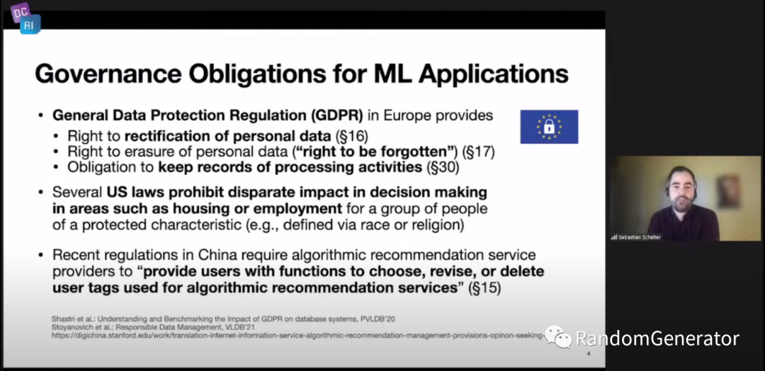 Part 2 的 talk 都跟 data governance 有关,开场的这个来自 University of Amsterdam 的 Sebastian。首先介绍了各国出台的数据安全隐私等方面的法规: