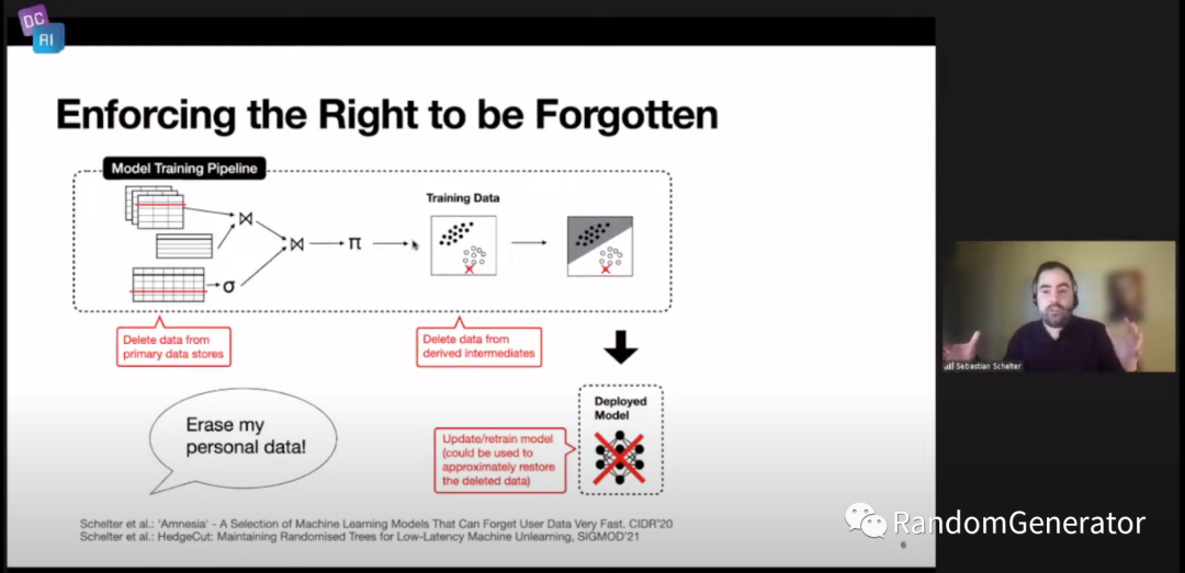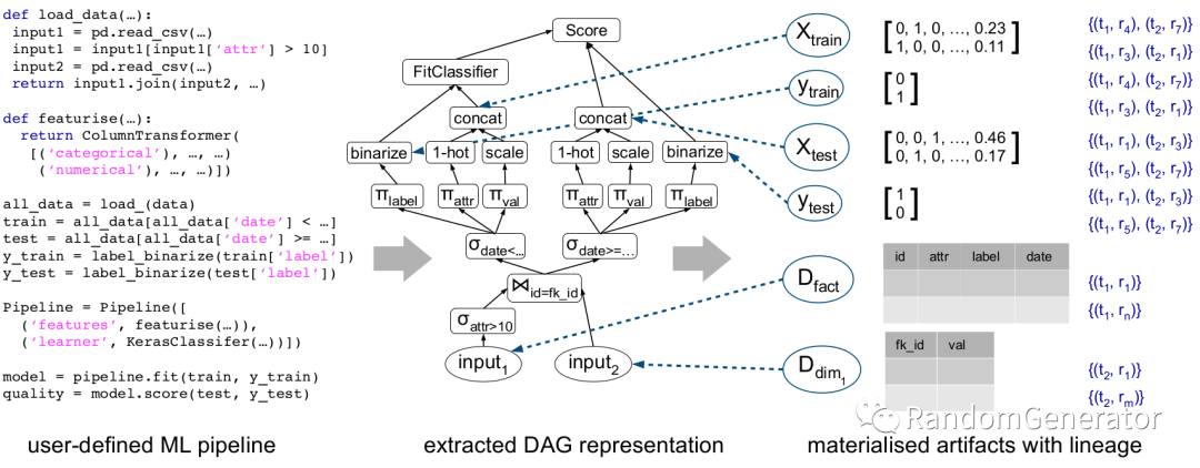 当用户希望跟自己相关的个人信息被删除时,AI 系统中需要对原始数据,模型训练数据以及训练后获得的相关 embedding 数据都进行删除,这对于传统的数据流模型流来说提出了新的需求与挑战。他们实验室开发了 mlinspect[28],能够自动从数据模型 pipeline 中提取 DAG 关系图,并记录细粒度的血缘关系,以便后续实现前面提到的单条用户数据删除时的级联更新。